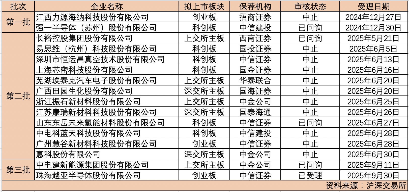 此外,交易所网站显示,上述企业中审核状态显示为“中止”的企业,主要是因发行上市申请文件中记载的财务资料已过有效期,需要补充提交。